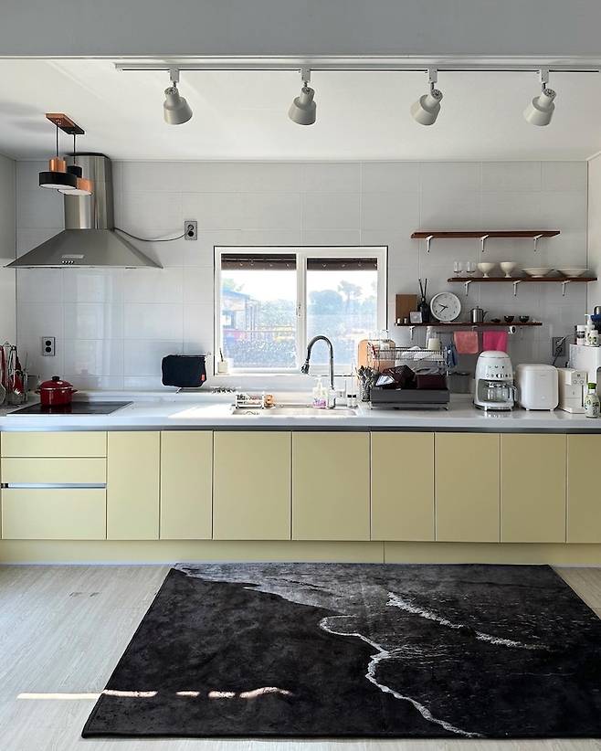 짜잔! 훨씬 환하고 아름다워지지 않았나요? 흰색으로 했으면 상부장 없이 넓은 주방이 너무 차가운 느낌이었을 것 같아요. 시공하고 나니 훨씬 아름다운 모습에 혼자 베실베실 웃곤 했답니다. 주방은 좀 더 꾸며보고 싶은 마음이 가득한데, 아직 사는 게 바빠서 많은 시도는 안 해봤어요. 천천히, 하나씩 바꿔보려고 합니다.
