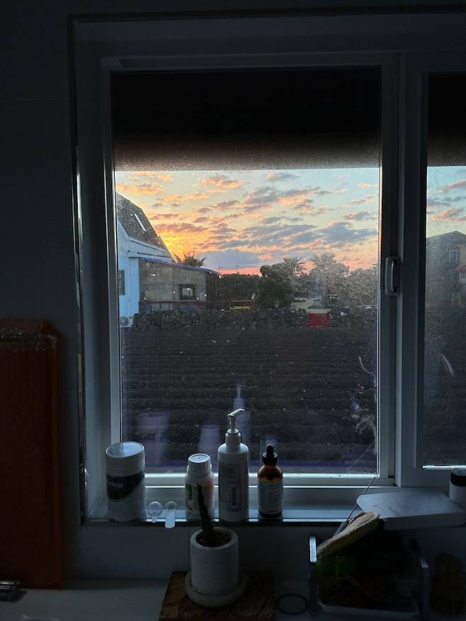 새벽에 일어나 창문을 바라보면 해가 조금씩 뜨는 걸 지켜볼 수 있는데요, 이사 온 다음 날 이 풍경을 보며 아, 오길 잘했다, 생각했답니다.