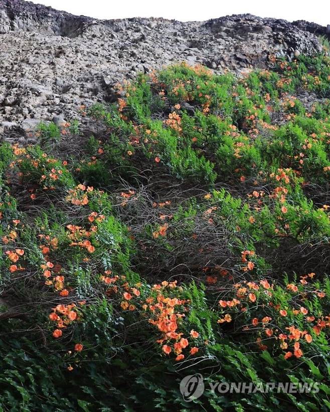 대구 중구 대봉1동 행정복지센터 외벽에 피어난 능소화는 ‘능소화 폭포’라는 이름이 붙은 경관이다.