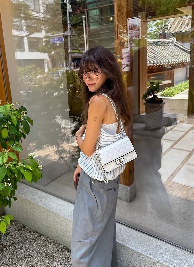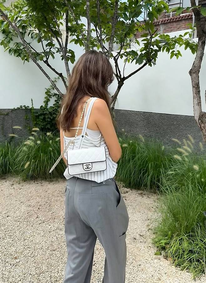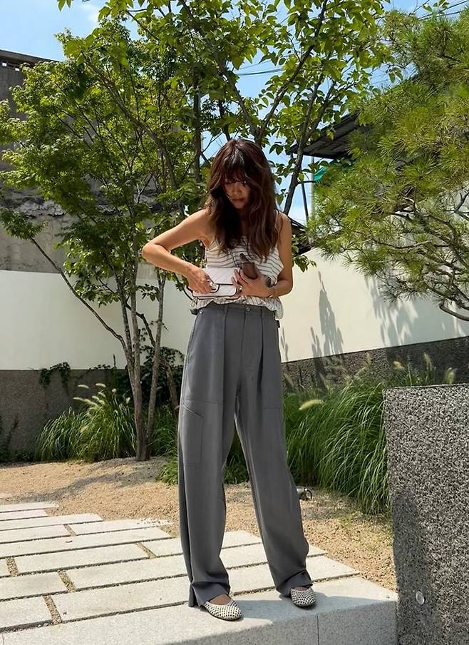 공개한 사진에서 채정안은 내추럴한 웨이브 헤어에 등을 시원하게 노출한 얇은 스트랩의 화이트 스트라이프 슬리브리스 탑에 차분한 그레이 컬러의 와이드 슬랙스를 매치한 데일리룩으로 청량하면서도 도회적인 분위기를 자아냈다.