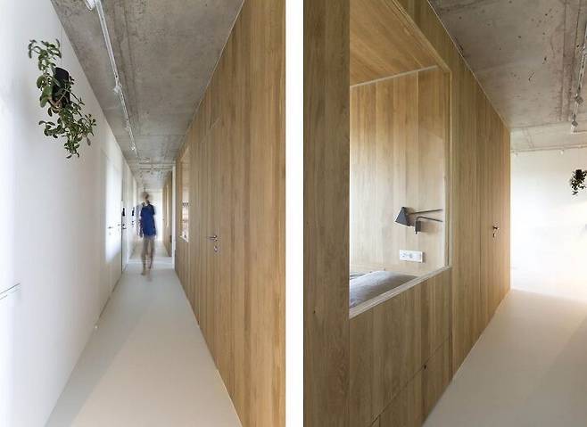 벽으로 나누는 Room(방)을 없애고, 정사각형의 모양이 아닌 길게 늘어서는 직선형으로 공간을 만들면 어떤 변화가 생길까? 우리 상식에서는 필수 같은 Room(방)을 없애는 것으로 공간은 자유를 얻게 되고 또 다른 새로운 Room (Space의 의미)을 갖게 된다.