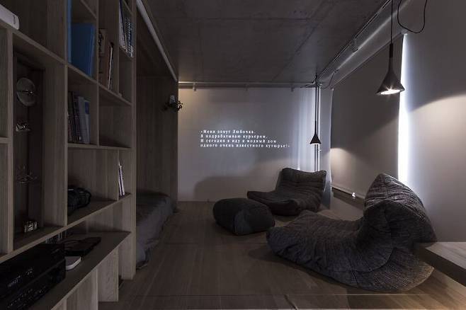 50m2(약 15평)이 넘어가는 국내 주택 공간은 두 개의 방을 가지고 있다. 스튜디오 형태의 원룸은 찾아보기 쉽지 않다. 이렇게 만들어야 팔린다는 시공사의 결과물이다. 그래서 50m2가 넘는 공간에 방이 없으면 낭비이거나 비정상적인 공간이라고 생각한다. 하지만 놀랍게도 이 모스크바 스튜디오(원룸) 아파트처럼 방을 버리므로 새로운 형식의 방과 공간이 탄생하게 된다.