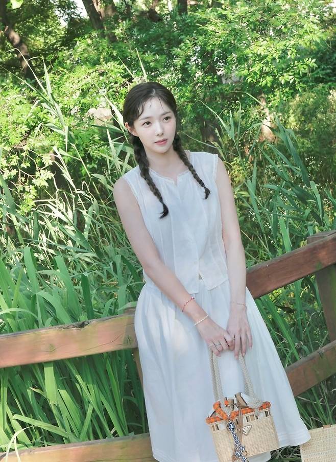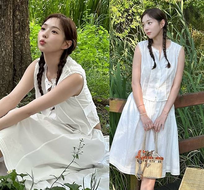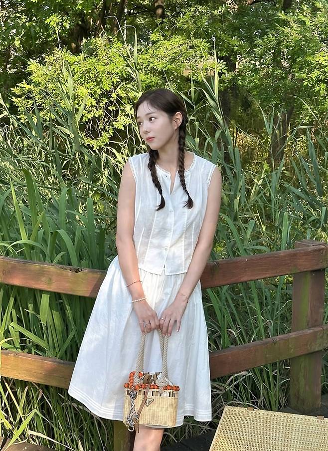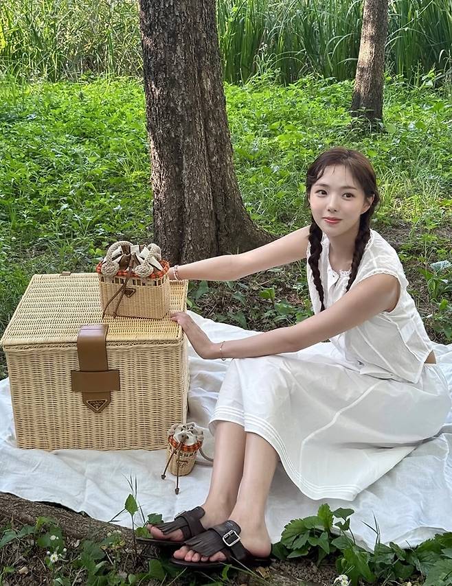 배우 채수빈이 민소매 블라우스와 A라인 스커트의 피크닉룩으로 동화 속 한 장면 같은 청초한 미모를 발산했다.