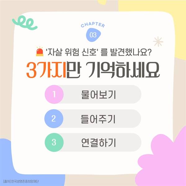 | ▲ 자살예방교육의 핵심은 상대가 자살 생각이 있는 지 확인하고, 관련 기관에 연결해주는 것이다. |
