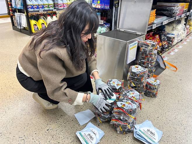 | ▲ 자살예방센터에서는 번개탄 포장지에 자살예방 스티커를 부착해 자살 수단을 관리하고 있다. 이는 자살시도를 지연시켜 충동을 억제하는 역할을 한다. |