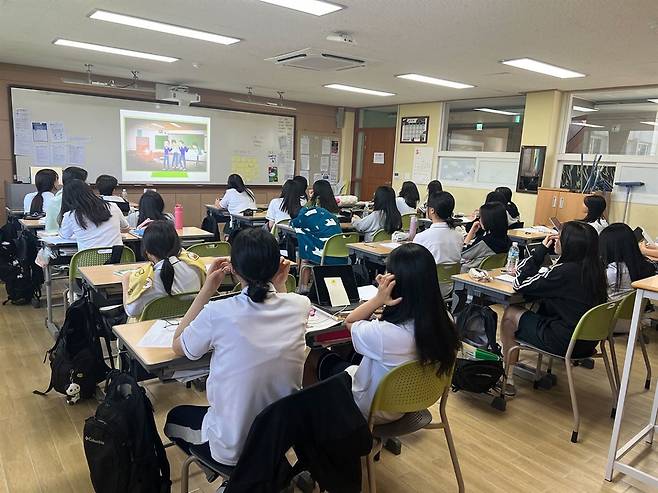 | ▲ 제주여자고등학교에서 ‘생명지킴이 양성’ 교육을 하고 있다. 생명지킴이는 누군가의 자살 징후를 발견할 경우, 이에 맞는 도움을 주고 전문 서비스를 받도록 연계해 주는 훈련을 받는다. |