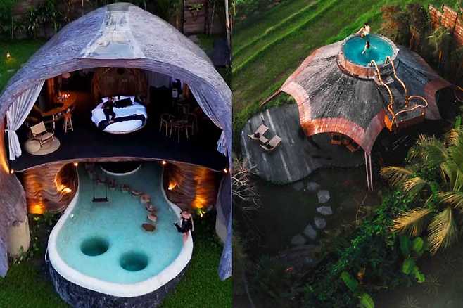 빌라는 개인 수영장을 갖추고 있는데요. 지붕 한가운데 수영장이 있는 빌라는 SNS에서 인기를 끌고 있습니다. 자연과 잘 어우러지는 대나무 집은 보는 것만으로도 마음이 평화로워 지는데요. 벨루바나 발리는 커플 여행객에게 인기 있는 발리 리조트입니다.