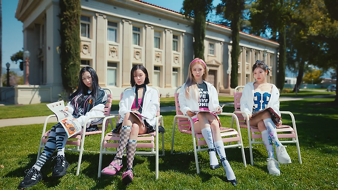 마지막으로 제목처럼 역대급 핫하고 힙한 컨셉의 Spicy 뮤비 속 패션을 살펴봅시다. Spicy는 에스파 3번째 미니앨범 'MY WORLD'의 타이틀 곡으로 미국 하이틴 영화의 한 장면을 재현한 듯한 뮤직비디오와 컨셉이 매력적입니다.