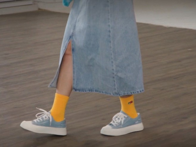 송지효의 이번 스타일링은 평가가 극명하게 나뉘었는데요, 세련된 데님 톤에 밝은 양말과 운동화로 포인트를 준 스타일에 ‘신선하고 예쁘다’는 반응과 함께, ‘너무 조잡하고 촌스럽다’는 평도 함께 존재했습니다. 특히 개나리 컬러의 양말이 전체 룩과 어울리지 않는다는 의견이 꽤 있었죠.