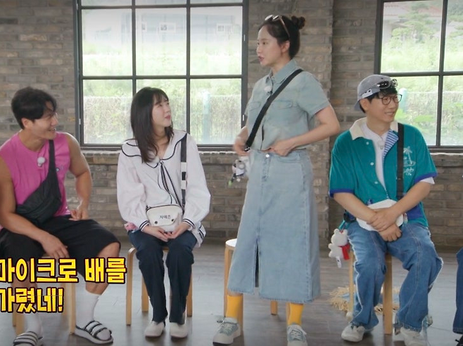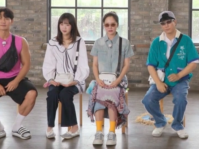 멤버들이 각기 다른 여름 휴가 콘셉트 의상으로 시선을 사로잡는 가운데, 송지효는 도전적인 청청 패션에 노란 양말과 블루 스니커즈를 매치하며 뚜렷한 존재감을 드러냈습니다.