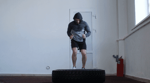 스텝박스나 단단한 도구 앞에 서서 준비합니다. 왼발을 도구 위에 올렸다가 내리면서 동시에 점프하듯 오른발을 올립니다. 이번에는 오른발을 내리면서 왼발을 다시 올려 양발을 교차하듯 빠르게 반복합니다.