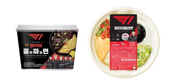 CU는 리그오브레전드 프로게임단 T1과 콜라보한 상품을 출시했다. 총 7종의 상품 중 면류는 2종으로 ‘탑티어 될 라면’과 ‘T1 탑티어 쫄면 짜장면’의 구성이다. 탑티어 될 라면(5,400원)은 매콤한 라면과 풍미 가득한 짜장의 조합에 치즈와 계란프라이 토핑을 얹은 제품이다. T1 탑티어 쫄면 짜장면(3,600원)은 쫄깃한 짜장쫄면과 반달 단무지가 동봉된 제품으로, 업계 최초로 뚜껑을 종이로 만들었다.