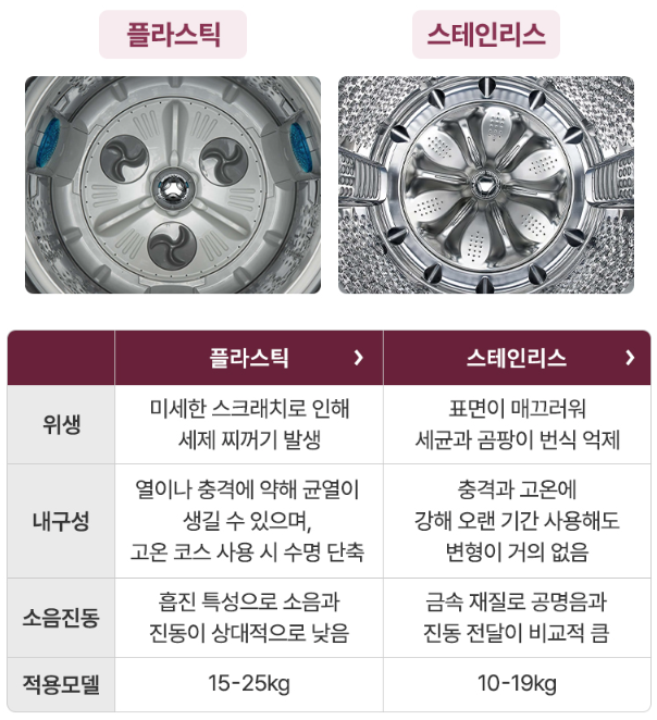 스마트 인버터, 스텐+플라스틱 세탁조로 PICK
