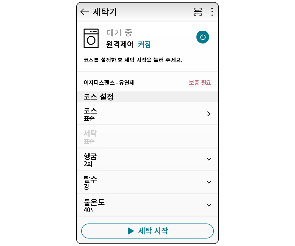 체구가 작으신 분들은 뒤쪽에 있는 컨트롤 패드가 너무 멀게 느껴질 수 있겠지만 2018년 이후 출시된 삼성 통돌이는 스마트싱스 연동이 가능합니다. 손을 뻗기 귀찮다? 손이 닿지 않는다? 그럼 핸드폰을 꺼내면 됩니다.