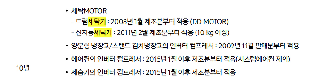 하지만 나머지 자잘한 부품들은 1~2년 내외 보증인 경우가 많습니다. 물론 내구성이 괜찮은 제품은 꽤나 오래 버티겠지만, 대체로 7년 이후부터는 하나 둘 고장이 나기 시작하기 때문에 수리비 부담이 점점 커질 수밖에 없어요.