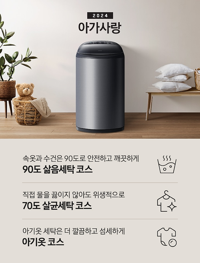가전은 '거거익선'이라지만 무조건 큰 게 능사는 아닙니다. 옷은 생각보다 예민해서 상황에 따라 분할 세탁을 해야 하는데요. 피부에 직접 닿는 속옷이나 수건, 갓난 아이용 빨랫감은 위생을 위해 따로 세탁하는 것이 좋죠.