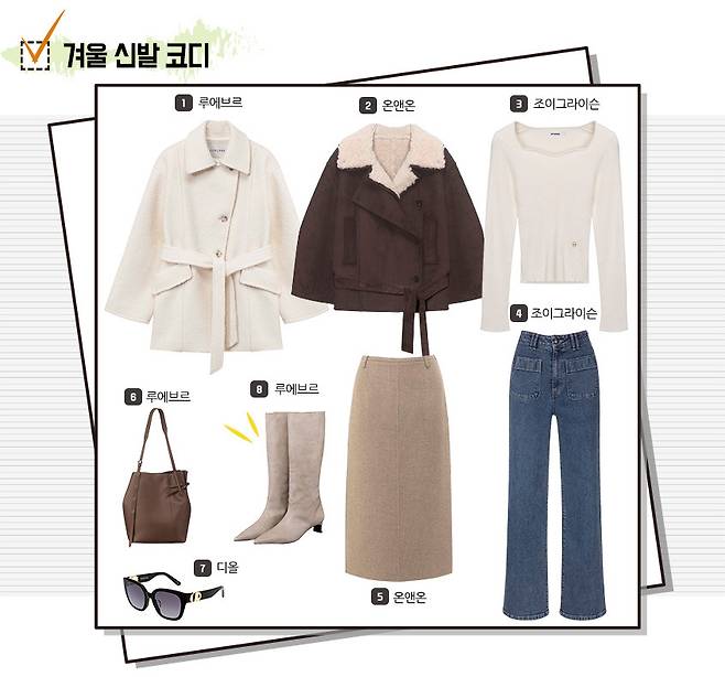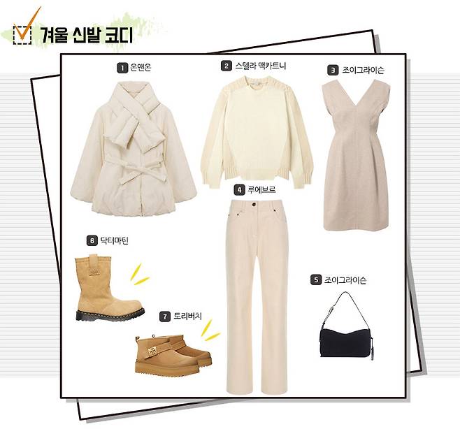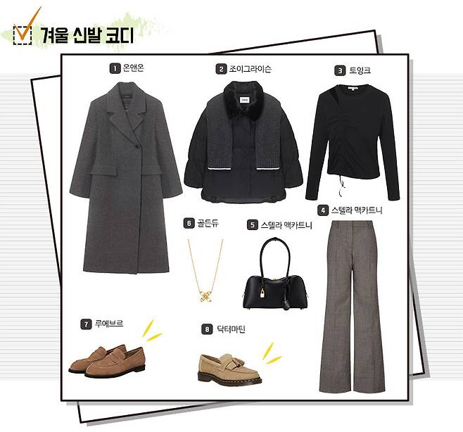 어떤 슈즈로 룩을 마무리할지 고민하시는분들을 위해 오늘은 부츠, 어그, 로퍼로 완성할 수 있는 겨울 신발 코디를 준비해보았답니다♥