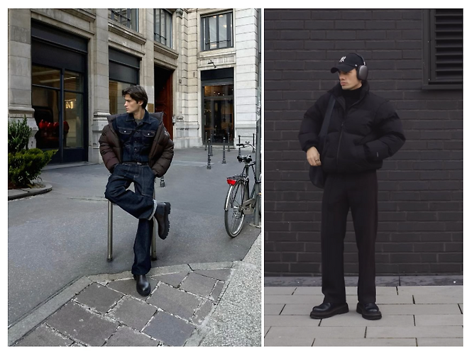 모던하면서도 세련된 무드가 있는 올블랙 더비슈즈나 보온성과 멋스러움을 더해줄 블랙 부츠라면 캐주얼 & 힙한 룩에