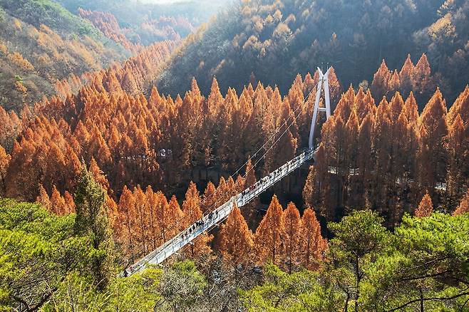 특히 하늘다리는 나무 사이를 가로지르는 출렁다리로, 숲 위를 걷는 듯한 독특한 경험을 제공합니다. 이곳에서 내려다보는 메타세쿼이아 숲은 압도적인 규모와 아름다움을 자랑합니다.