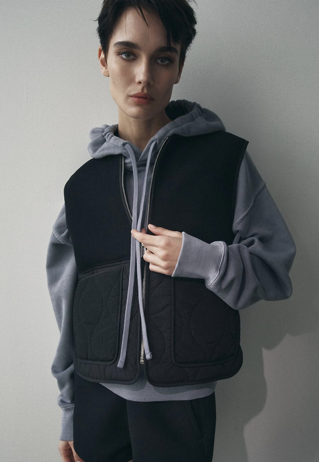 울소재가 포함된 베스트로 너무 스포티하지 않아서 코트에 이너로 걸쳐도 너무 추운 겨울에 예쁘게 레이어드 할수 있는 아이템 입니다.
