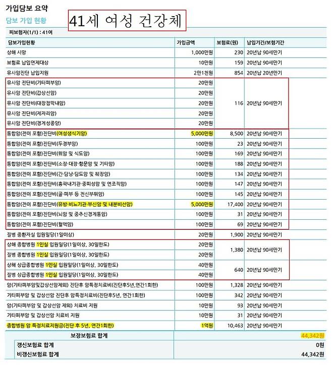 ▼41세 여성기준 건강체▼