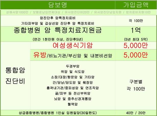 보험회사 상품별,성별,직업에 따라 가입가능한 담보와 가입금액,보험료 등은 달라질 수 있음