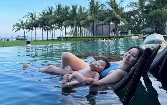 사진에서 이유영은 휴양지의 리조트 수영장에서 딸과 함께 여유로운 한때를 즐기는 모습인데요.