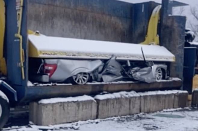 해당 차는 2023년 3월에 생산된 차량으로 5,300마일(8,530km)밖에 주행하지 않았다고 한다. 폐차된 차량은 포드 F-150으로 83,010달러(한화 약 1억 1,080만 원)부터 시작하는 고가의 리미티드 모델인 것으로 알려졌다. 두터운 그릴 위로 ‘LIMITED’라고 표시된 부분을 확인할 수 있다.