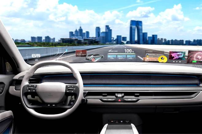 기존 헤드업 디스플레이(HUD)가 단순히 속도나 경로 안내 같은 기본적인 정보만 제공했던 것과 달리, 홀로그래픽 HUD는 운전석과 조수석을 아우르는 넓은 유리창에 다양한 콘텐츠를 선명하게 표시한다.