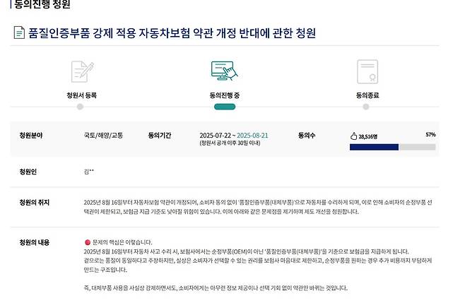 특히 자동차 커뮤니티와 유튜브 채널, 청와대 국민청원 등 다양한 플랫폼을 통해 “내 차를 내가 원하는 부품으로도 못 고친다”는 비판이 확산되면서 여론이 악화됐다. 이에 정부는 ‘소비자 선택권 보장’이라는 방향으로 재설계에 나섰다.