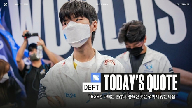 쿠키뉴스 문대찬 기자가 지난 10월9일(현지시간) 뉴욕에서 LoL 프로게이머 '데프트' 김혁규 선수(26)를 인터뷰한 후 유튜브 영상 제목에 "중요한 것은 꺾이지 않는 마음"이라고 썼다.