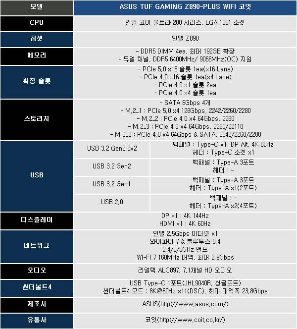 애로우 레이크 시대 개막, ASUS TUF GAMING Z890-PLUS WIFI 코잇
