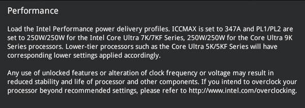 한편, 13세대와 14세대 코어 CPU 시대의 말미에 안정성 이슈로 홍역을 치룬 인텔은 해당 세대를 비롯해 애로우 레이크(Z890) 지원 메인보드의 기본 전력 설정을 보수적으로 설정하고 있다.