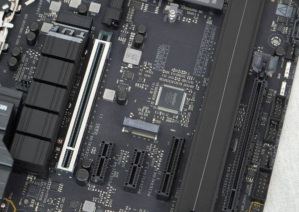 참고로 메모리 슬롯의 고정클립쪽에는 Q-LED를 배치, 부팅시 CPU와 DRAM, VGA, BOOT 장치의 이상 유무를 직관적으로 확인할 수 있고, 24핀 주전원 커넥터 좌측에는 20Gbps 성능의 USB 3.2 Gen2 Type-C 커넥터를 배치, 케이스 전면 USB Type-C 포트를 활용할 수 있다.