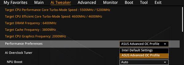 이에 기본 전력 설정을 퍼포먼스 프리셋(PL1=PL2, MTP)으로 설정하지만, 코어 울트라 9 285K는 코어 울트라 5 245K 및 코어 울트라 7 265K보다 더 높은 수준의 익스트림 프리셋도 제공한다. 여기에 인텔의 기본 전력 프로파일 제한을 완전히 풀어버린 ASUS OC 프로파일도 기본 제공된다.
