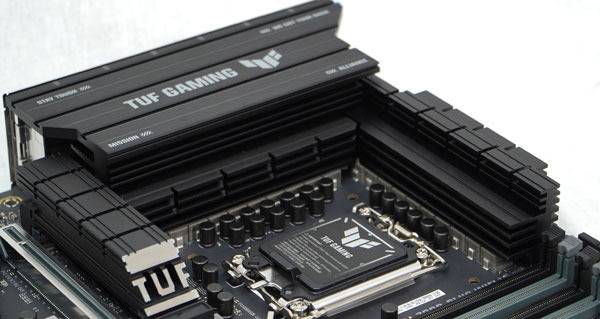 ASUS TUF GAMING Z890-PLUS WIFI 코잇 메인보드는 PCIe 5.0 x16 슬롯과 PCIe 4.0 x16(x4Lane) 슬롯, 2개의 PCIe 4.0 x1슬롯, PCIe 4.0 x4슬롯으로 구성되어 있다. 여기에 PCIe x16 슬롯 사이에 노출된 M.2 소켓을 포함해 PCIe 5.0 x16슬롯 우측(CPU 소켓 방향)에 PCIe 5.0 x4Lane M.2 소켓, PCIe 4.0 x4 슬롯과 PCIe 4.0 x16 슬롯 사이에 두 개까지 총 4개의 M.2 소켓이 제공된다.