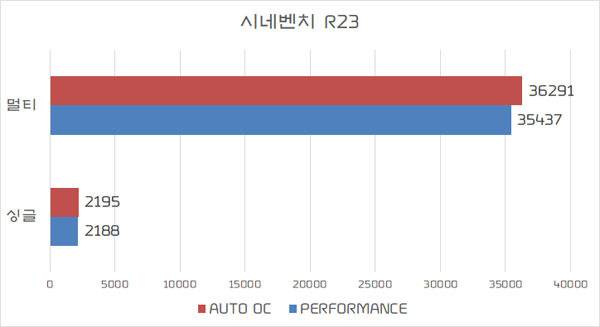 시네벤치 R23 기준 싱글 코어 점수는 7점, 멀티 코어 점수는 약 850점 높게 나왔다. 당연하지만 CPU의 오버클럭 수율이나 메모리, 쿨링 솔루션, 바이오스 버전 등 여러 요인에 의해 오버클럭 한계치는 달라진다. 따라서 이번 테스트는 본 메인보드의 자동 오버클럭 기능이 실제로 효용이 있다는 정도만 알고 넘어가기 바란다.