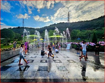 브이랜드 물놀이터는 강진수국길축제만의 특별한 매력입니다. 바닥분수와 쉬폰 그늘막, 넓은 쉼터 공간까지 마련되어 있어 가족 단위 피서지로도 충분한 만족감을 줍니다.아이들은 물총 서바이벌과 키즈 체험, 어른들은 꽃길 트레킹과 산사 음악회로 각자만의 여름을 즐길 수 있어, 세대 불문 힐링 여행지로 손꼽힙니다.