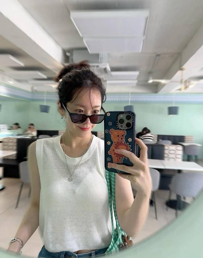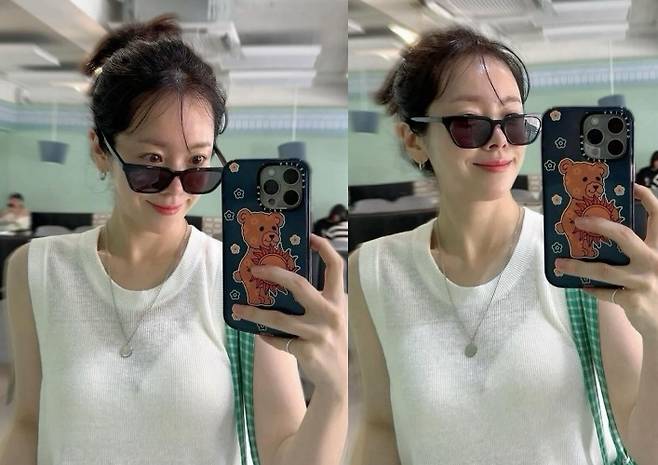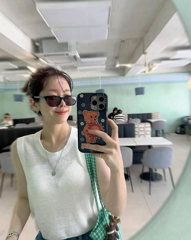 한지민은 헤어스타일은 묶은 번 스타일로 캐주얼하면서도 단정한 분위기를 완성했습니다.