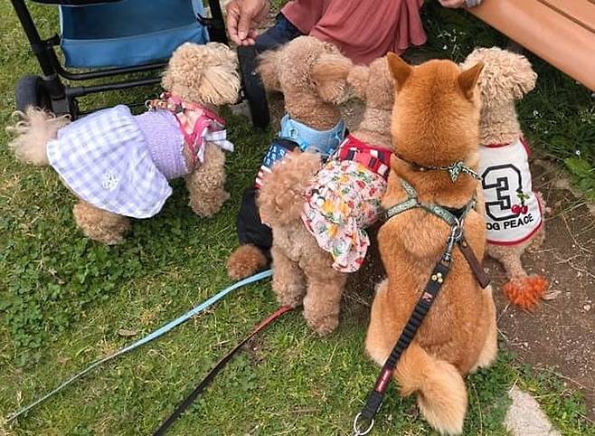 공개된 사진 속에는 토이 푸들 강아지들이 간식을 먹기 위해 모여있자 자기도 간식을 얻어 먹고 싶었는지 그 사이에 끼여 들어간 시바견 강아지 코지로의 모습이 담겨 있었죠.