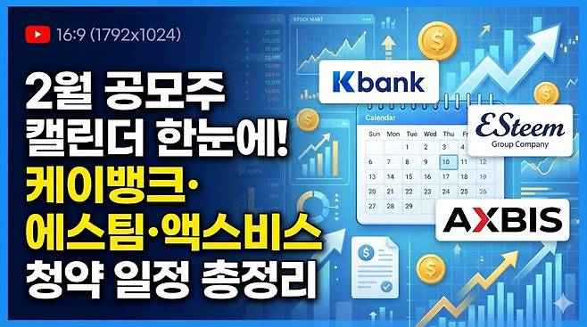 2026년 2월 공모주 일정은 요약하면 케이뱅크(2/20, 23) → 에스팀·액스비스(2/23~24)로 이어지는 구조이며, 환불일과 상장일까지 같이 묶어서 관리하시면 효율이 높아집니다.