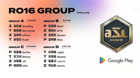 SOOP, 'Google Play ASL 시즌 20' 16강 8일 시작