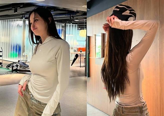 머리는 길게 내려오는 스트레이트 헤어로, 특별한 컬이나 웨이브 없이 자연스러운 상태를 유지하고 있습니다. 이는 전종서의 캐주얼하고 편안한 이미지를 강조합니다.