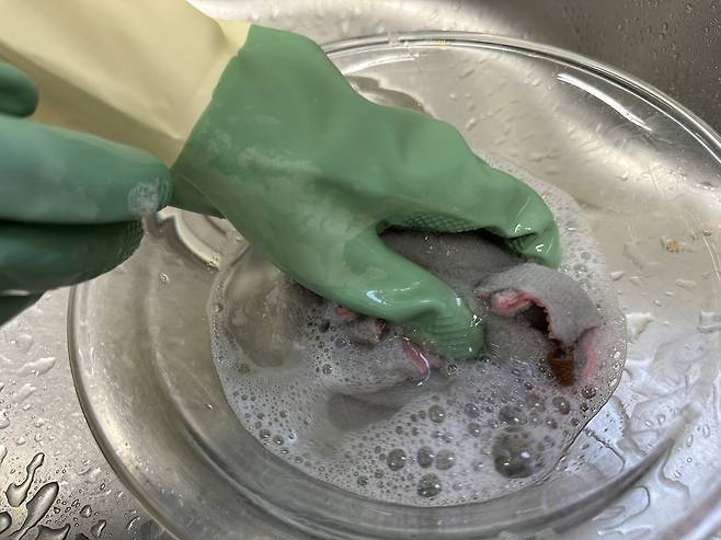 고무장갑 착용 필수입니다!