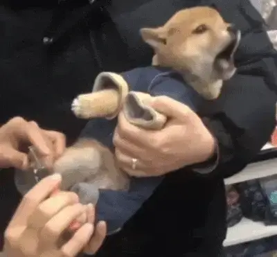 처음에는 주인에게 안겨 조용히 있더니, 발톱을 깎으려는 순간 갑자기 몸을 뒤틀며 극적인 반응을 보입니다.