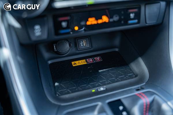 스포티한 느낌의 헤드레스트는 시트와 일체형이다. 편하게 머리를 기댈 수 있어 장거리 운전에 도움이 된다. 블랙 가죽과 레드 스티치를 적용해 감성을 자극한다. 센터콘솔 내부에는 USB-C 포트가 2개가 내장되어 있다.