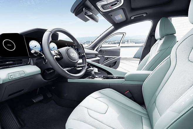 가장 먼저 눈에 띄는 것은 기존 12.3인치 디스플레이에서 16:9 비율의 더 커진 와이드 디스플레이로의 업그레이드다. 전통적인 계기판이 사라진 완전한 디지털화가 이루어진 것이다. 현대차의 최신 운영체제 ‘플레오스’를 탑재해 테슬라와 같은 고급 전기차에서나 볼 수 있었던 인포테인먼트 시스템을 준중형 세단에 적용했다.