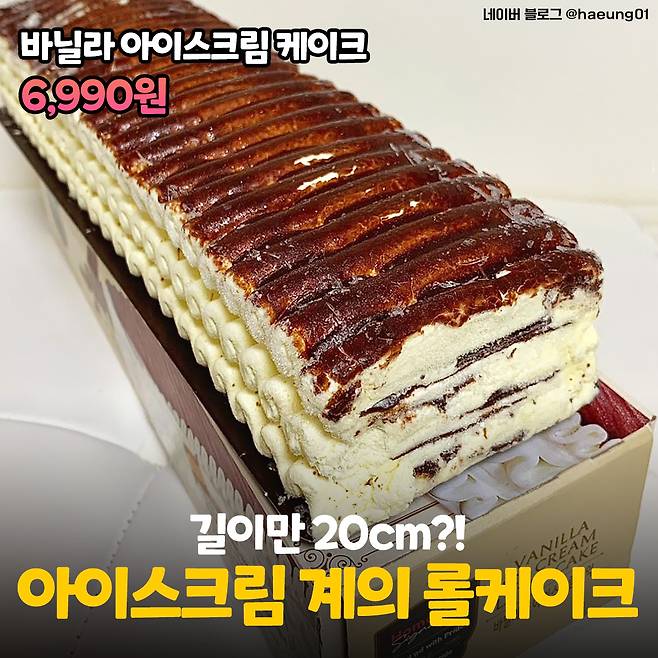 두 번째는 비주얼만 봐도 압도되는 <바닐라 아이스크림 케이크>에요! 얼핏 봐도 20cm는 족히 넘을 것 같은 롤케이크st 아이스크림이더라구요. 홈플러스에서만 판매하는 시그니처 제품이라는 점☆