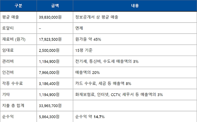 이 정보는 공정거래위원회에 등록된 가맹사업 정보제공시스템 기업의 정보공개서를 기반으로 확인한 내용입니다. 공정거래위원회에서 더 정확한 정보를 확인해보세요.