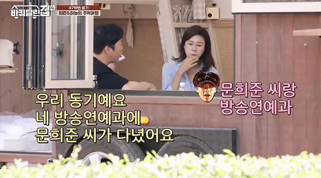 김희원은 “저는 학교를 매일 가야 했다”며 “제가 학생회장이라 매일 갔다”고 과거를 회상했고 같은 학번 동기로 누가 있냐는 질문에 김희원과 김하늘은 “그때 우리 동기로 방송연예과에 문희준 씨가 계셨다. H.O.T 때라 진짜 인기 많으셨다”고 이야기했다.